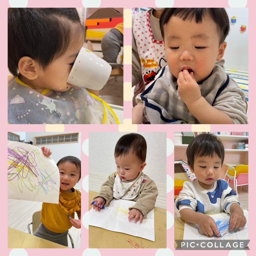 ポム組さんは、お部屋でおえかきをしたりソフトブロックで遊んだりしました☺️たくさん遊んで、ごはんもモリモリ食べました💕