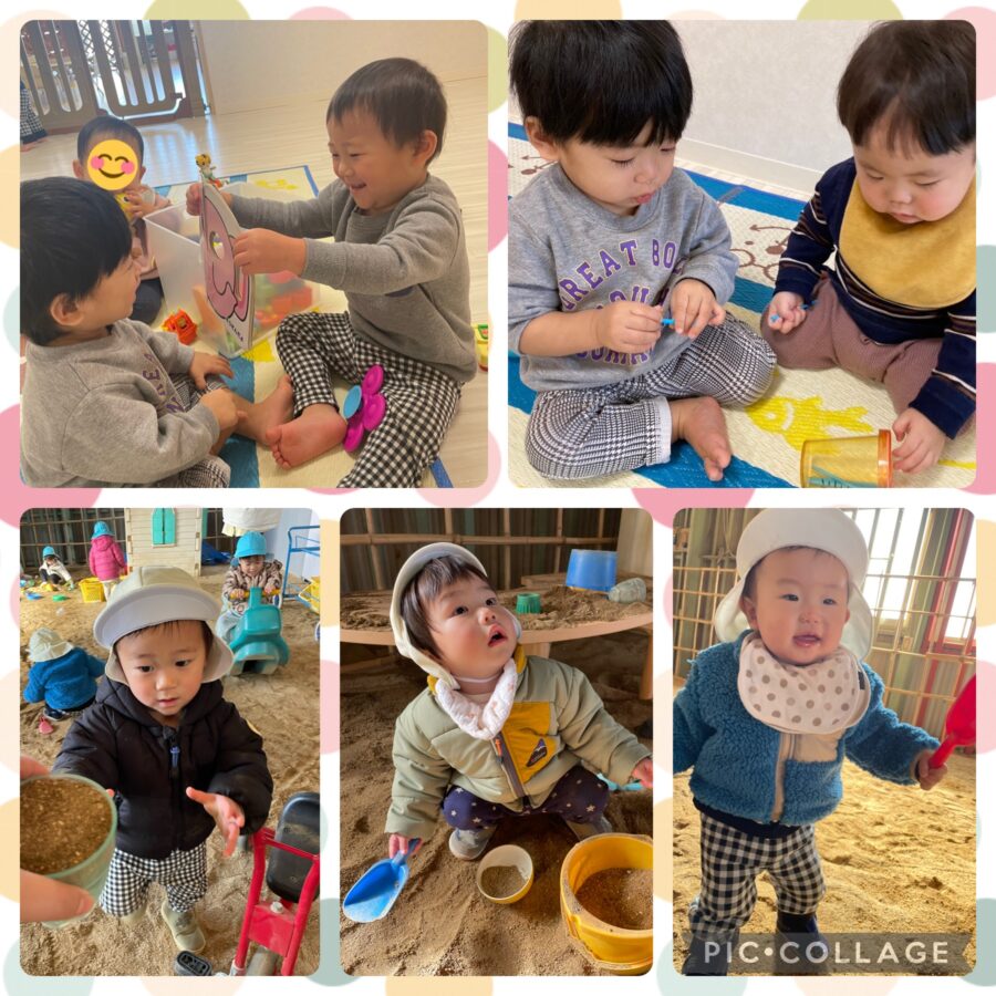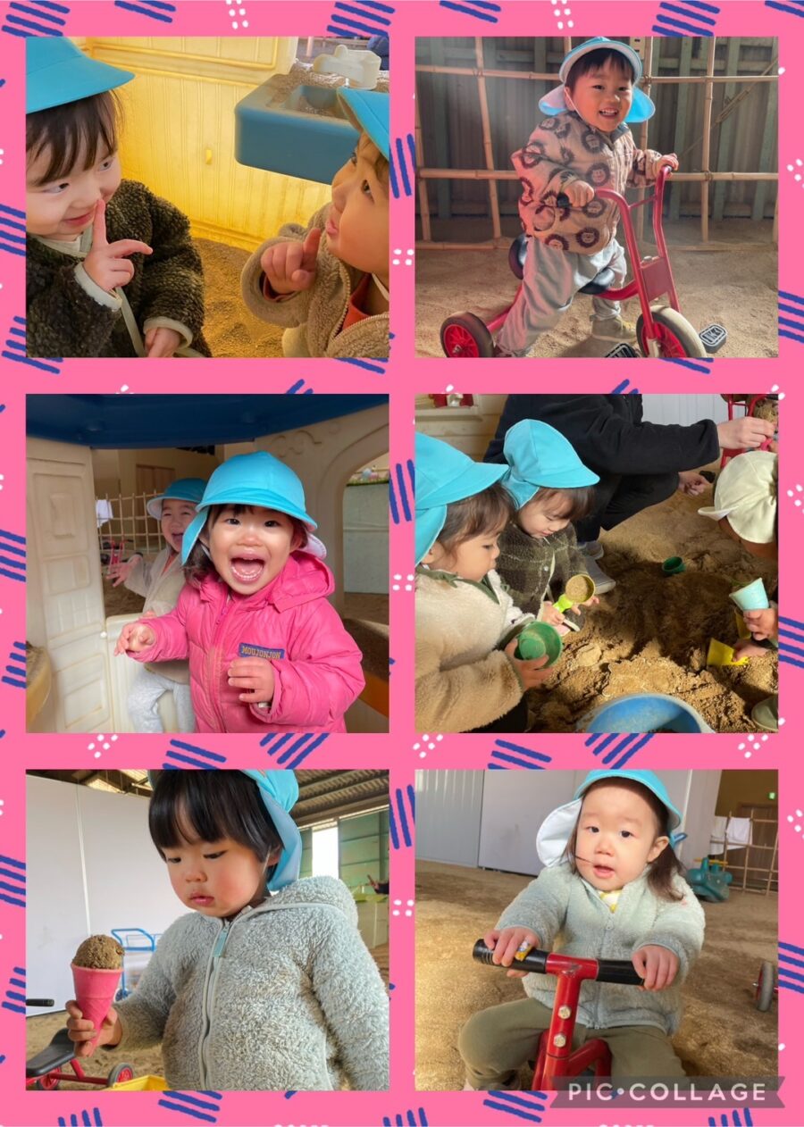 今日のミカン組さんは運動場で砂遊びをしました‼️