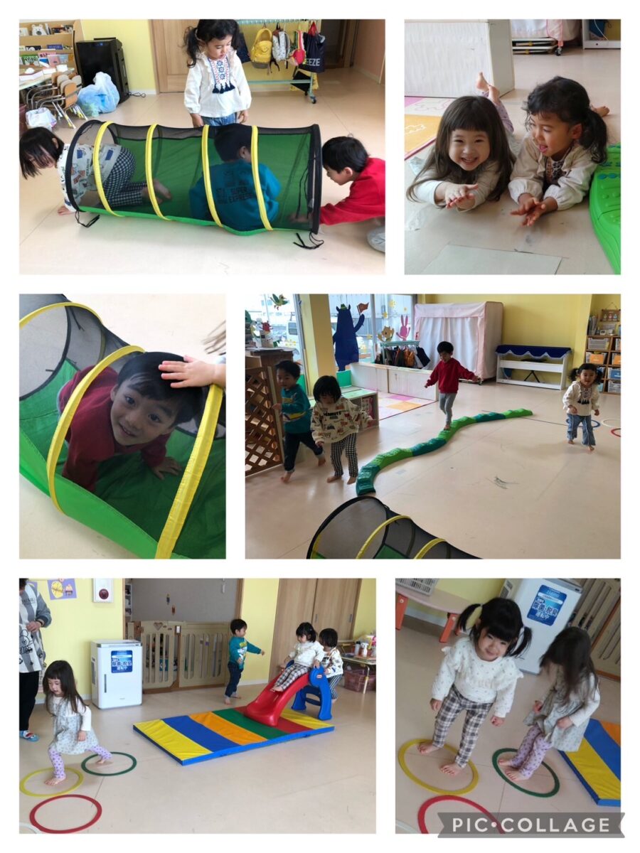 跳んだりバランスをとったりと身体を上手に使いながら楽しむこども達でした😄