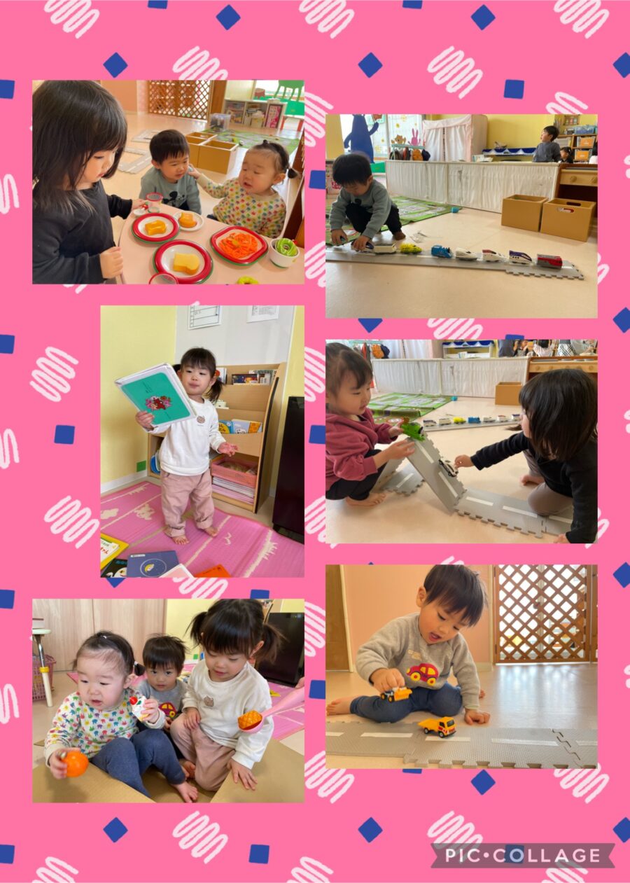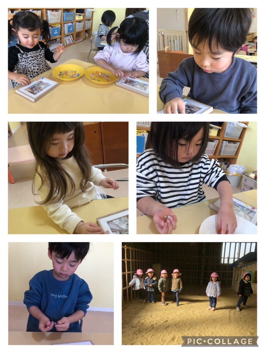 ポム組さんは、運動場に出て遊んだり、お部屋でゆっくり過ごしました☺️ストロー落としが人気で、細いストローを上手に持っています✨お友だち同士のやりとりも増えてきました💕
