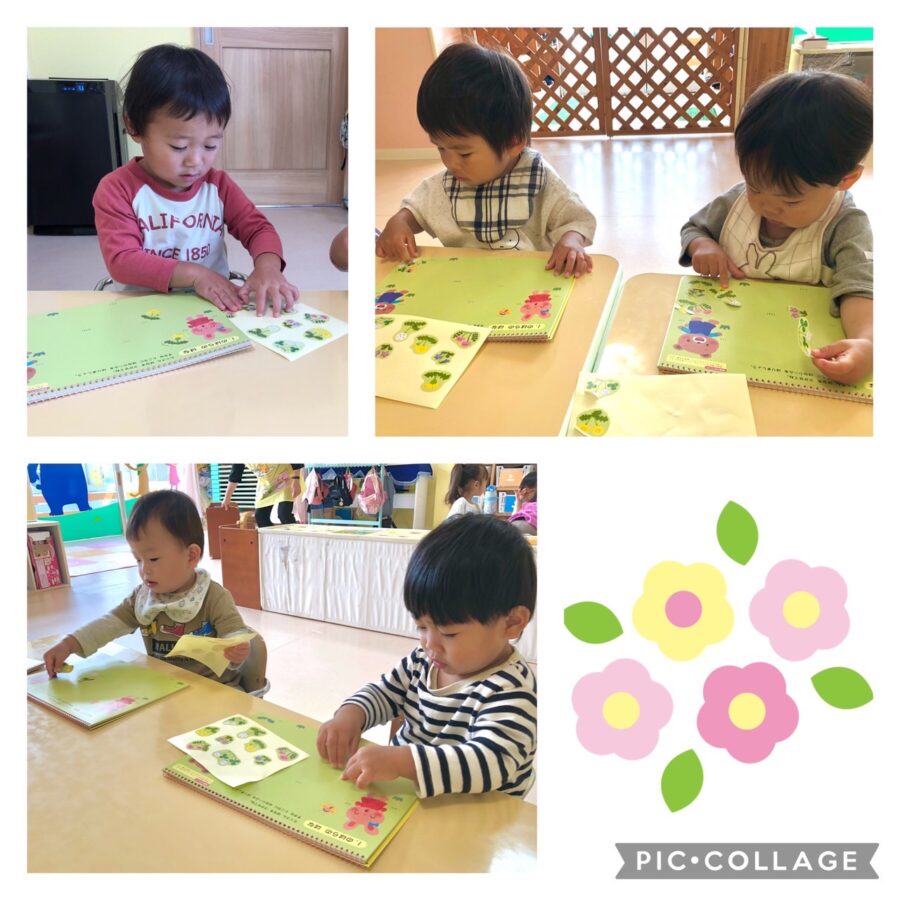 真剣な表情でシールを剥がし、ペタペタと貼って楽しむこども達😄