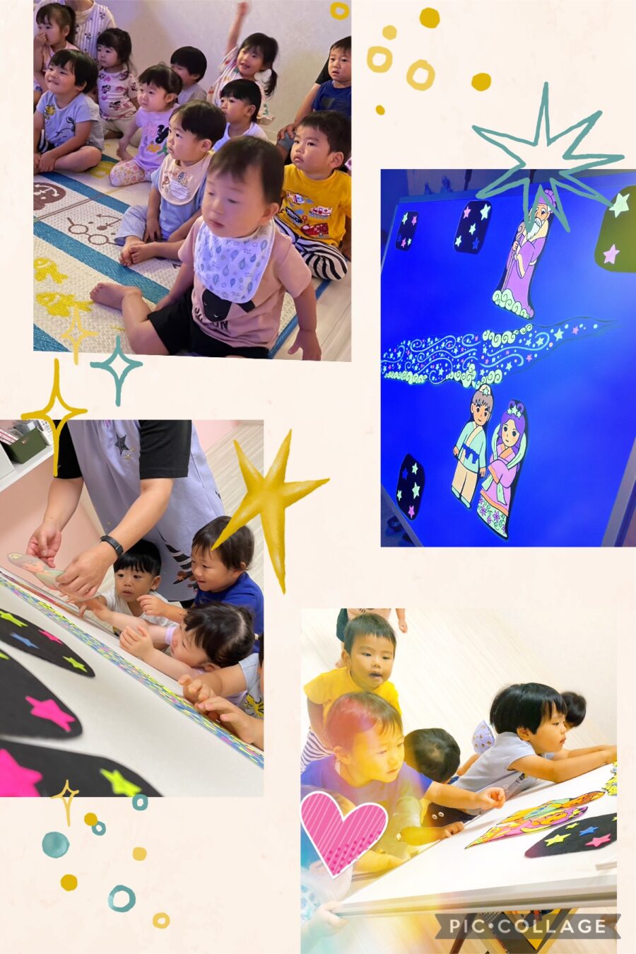 七夕は、夜空にお星様が出るよというお話や由来のお話を聞きました⭐️