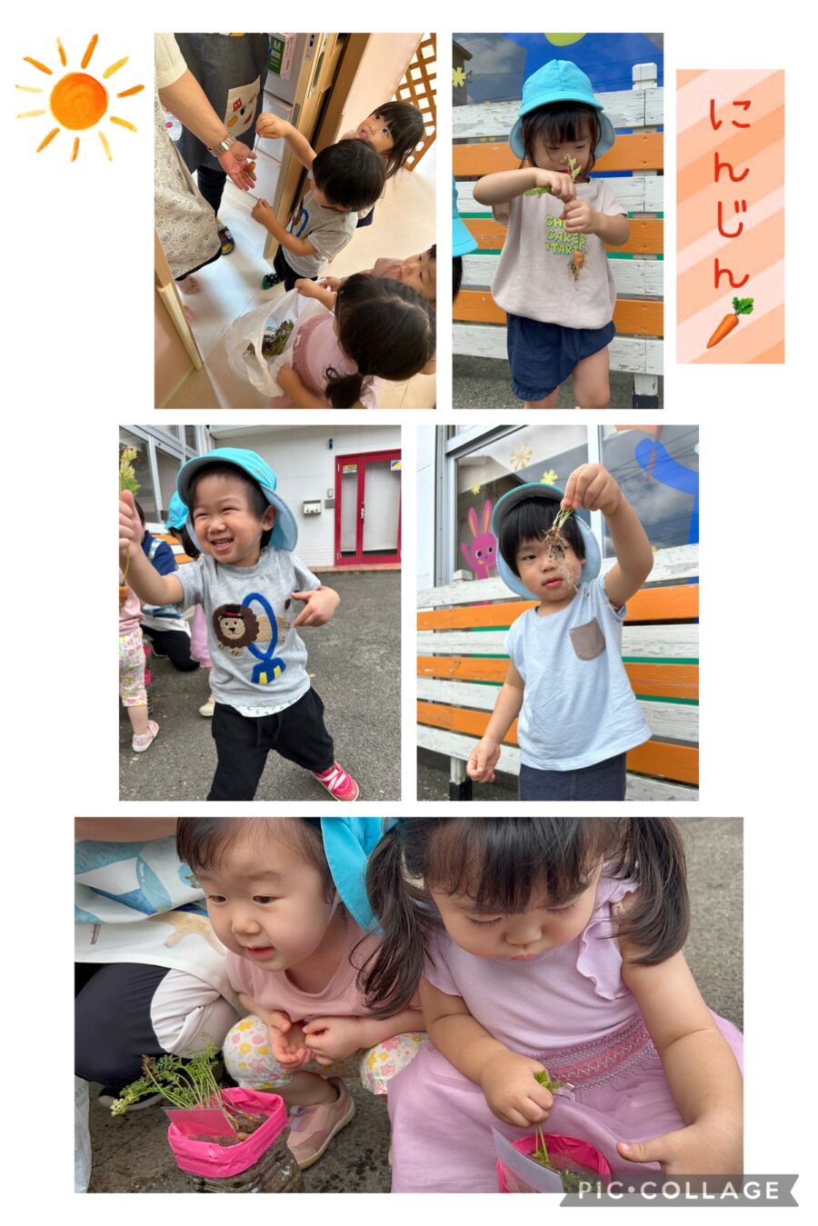 大きさが違うにんじんがあって「あかちゃんにんじんだね」とお話しています😆おうちに持って帰るのでお話を聞いてみてくださいね!