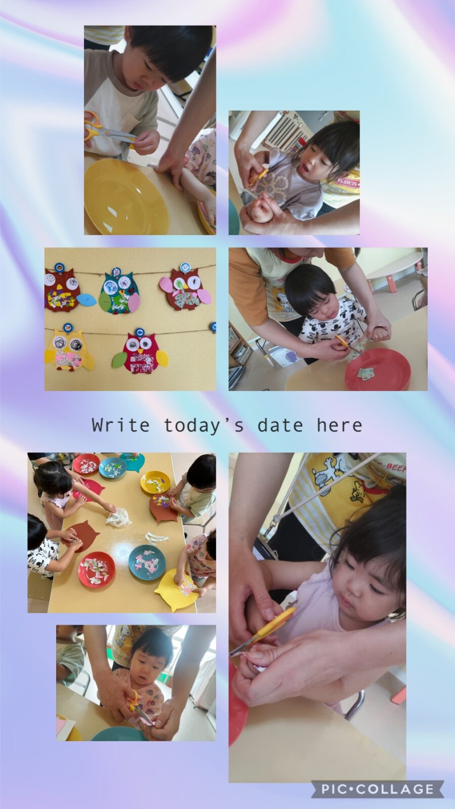 保育士と一緒に一回切りの練習をしましたよ✂️