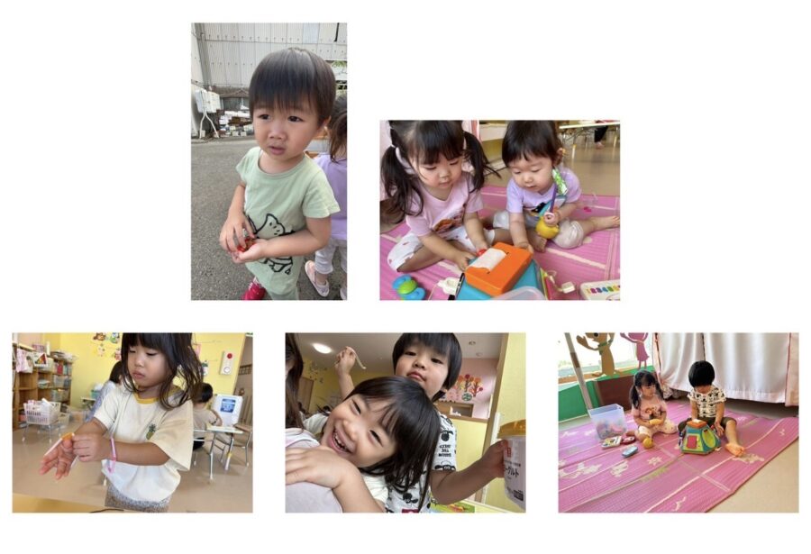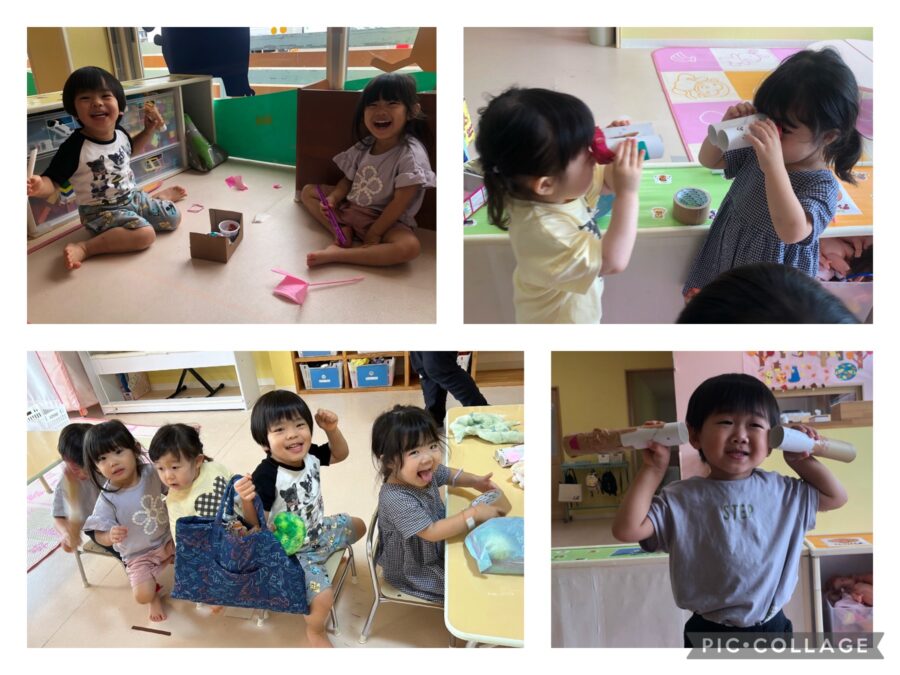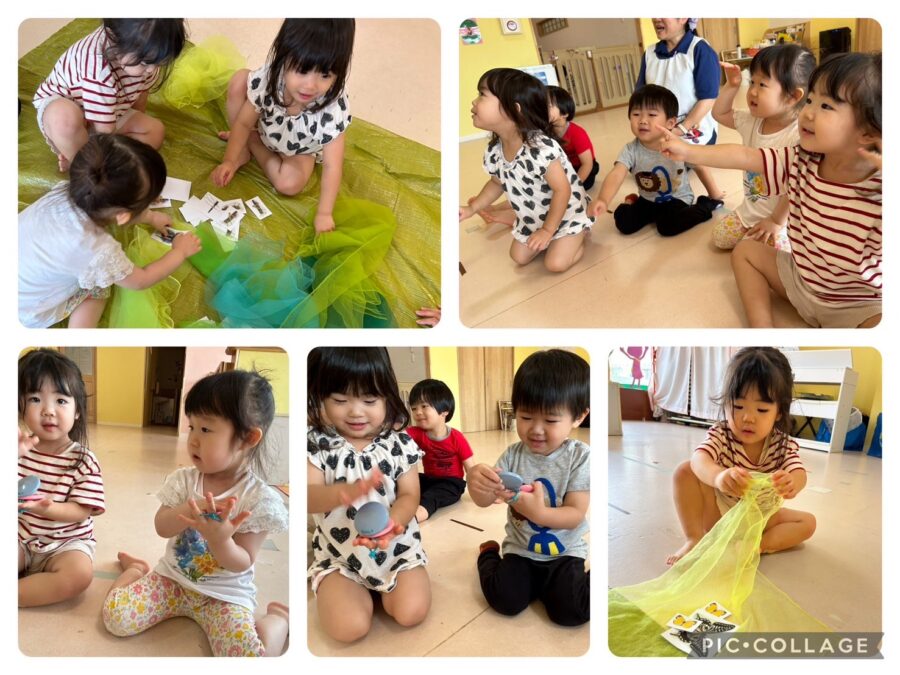 ポム、ミカン組さんは輪っかを車に見立てたり、