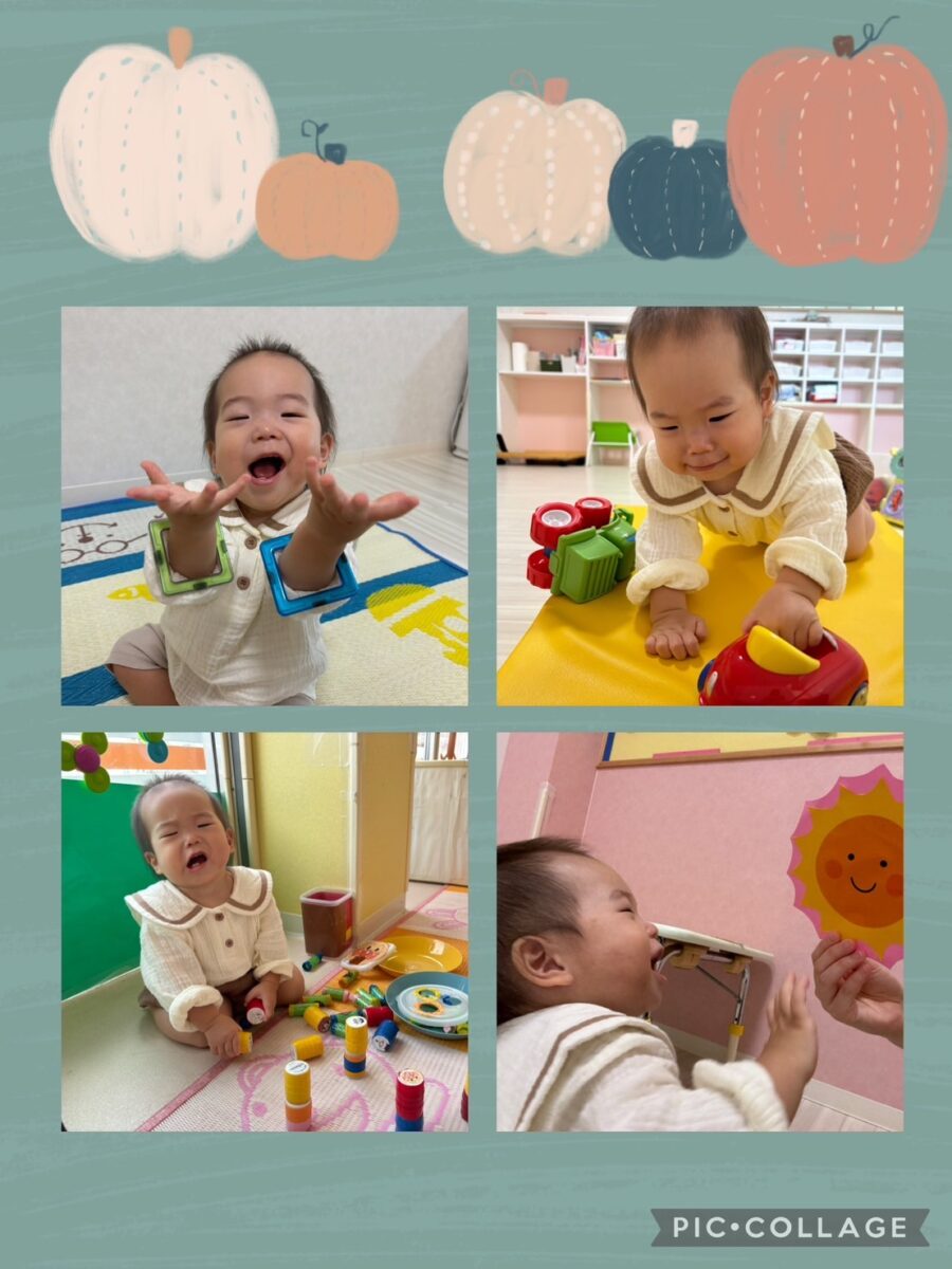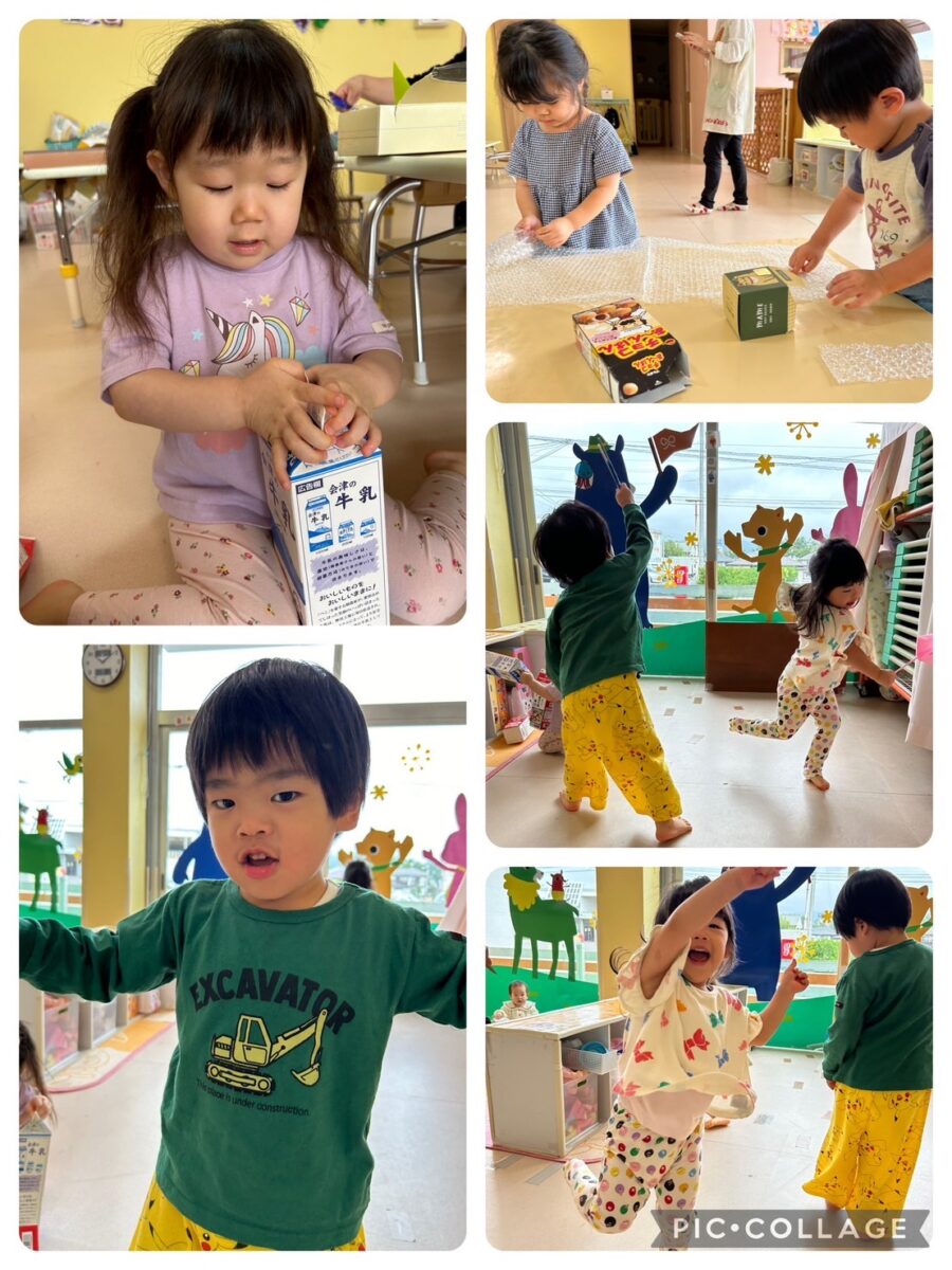 パズルを積み上げますが倒れちゃうと、残念そうに