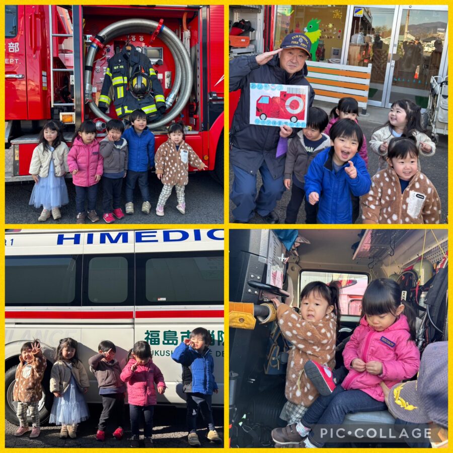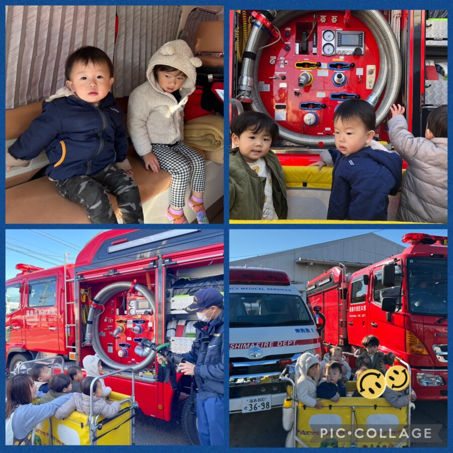 消防車と救急車が来てくれ、大興奮の子ども達!