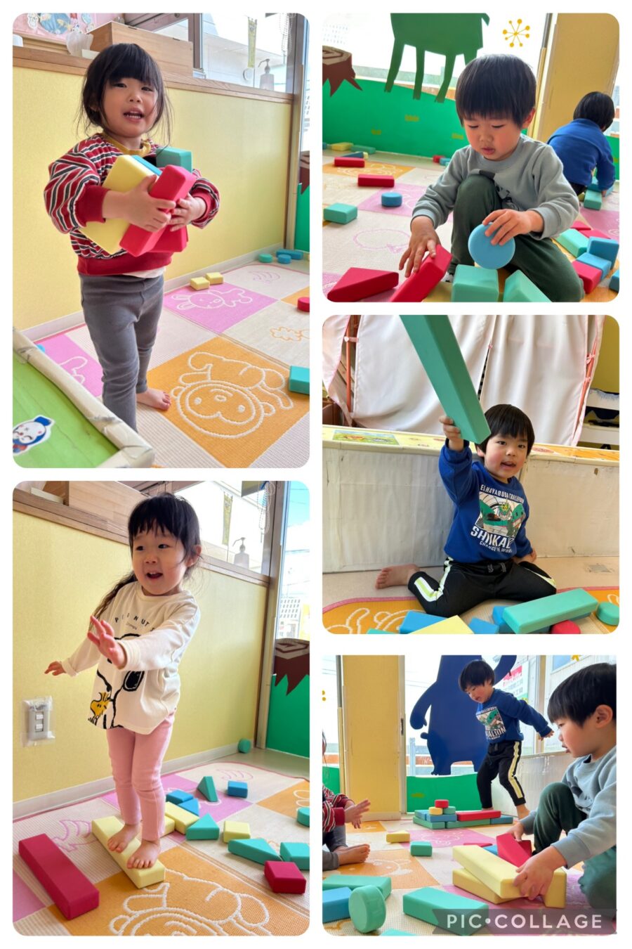 今日のポム組さんはお部屋でおままごとをしたり、ソフトブロックをしました!
