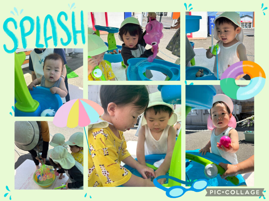 今日は、水遊びをしました☀️冷たい水が気持ちよく、子どもたちも夢中になって遊んでいました☺️水風船にも興味津々で、にぎにぎして感触を楽しんだり、ピューと出る水をかけあったりしていました💕