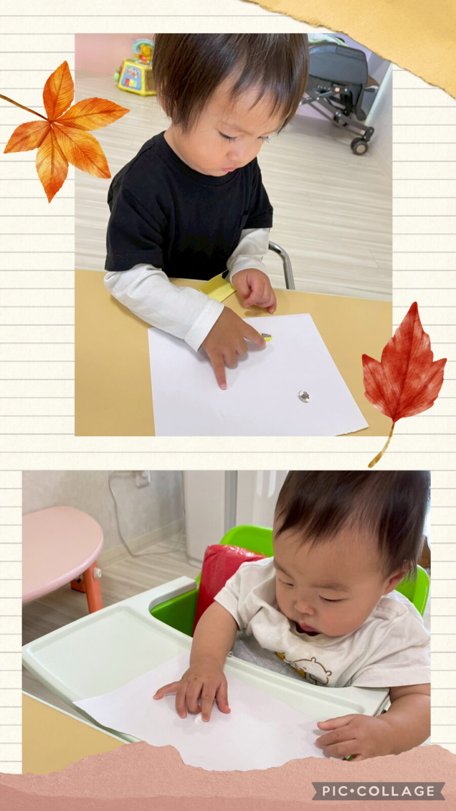 今日は、ミカン組さんとブルー組さんはおままごとやミニカーをして遊びました🩷お友だち同士のやりとりも増えて、楽しんでいます☺️ポム組さんはシール貼りに興味津々です🌈
