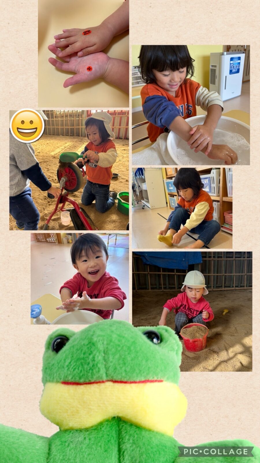 お砂を食べ物に見立ててごちそうしてくれたり、ブルー組さんは最後は追いかけっこをして楽しみました😄