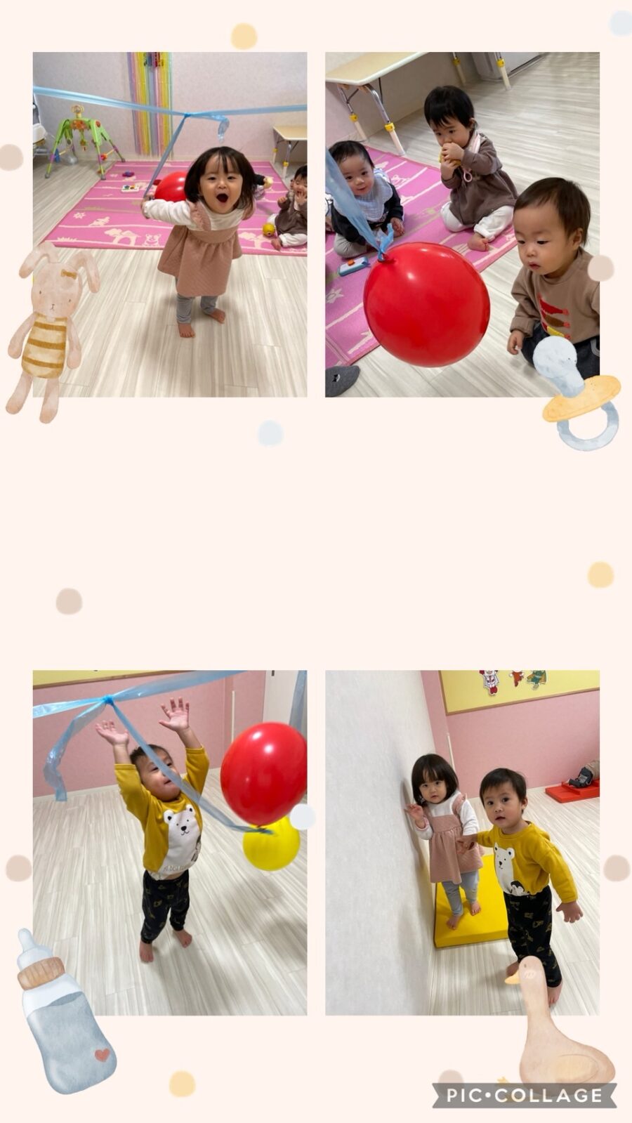 紐をつけて吊るしてあげると手で弾いたり紐を