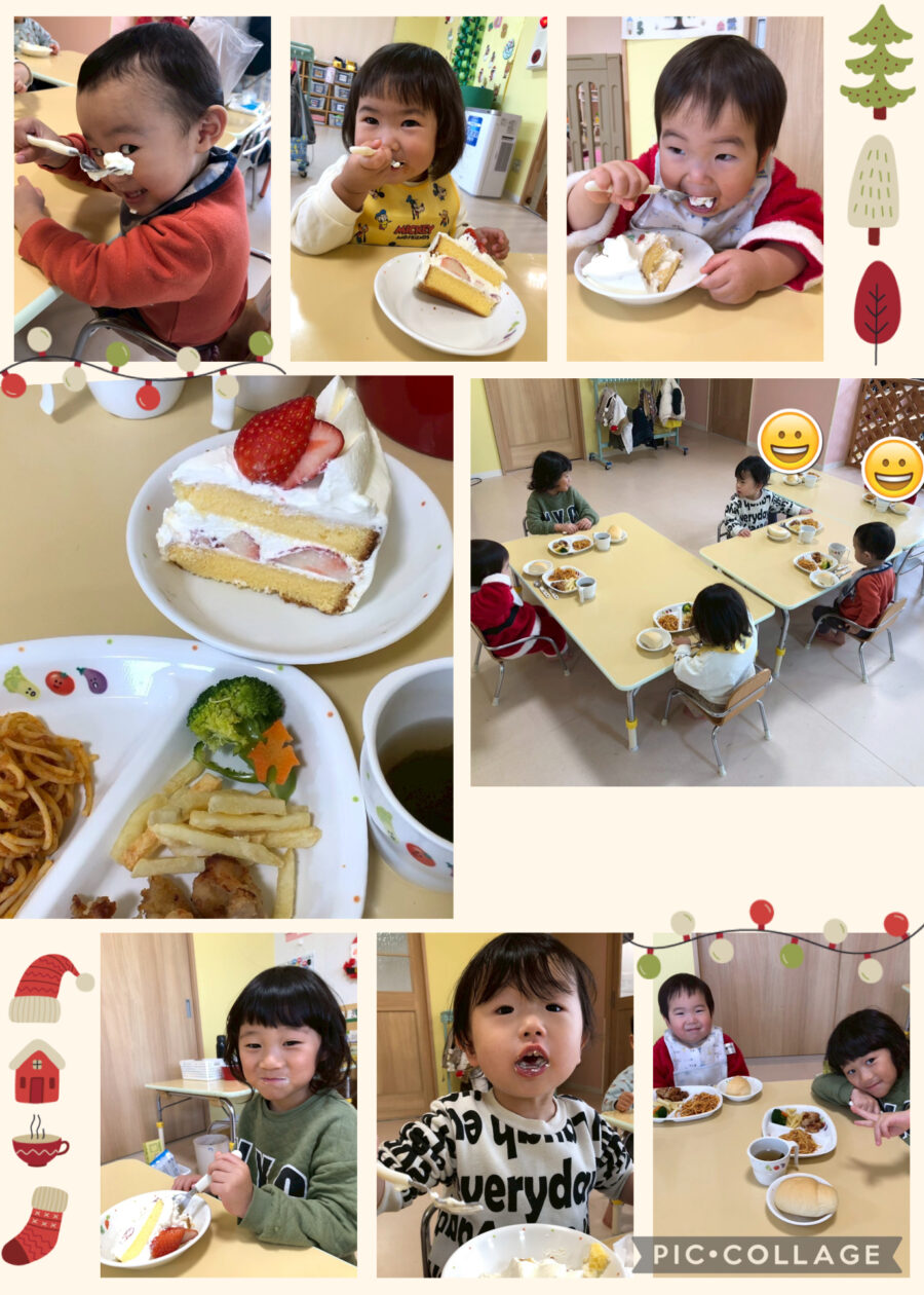 給食は、クリスマス特別メニューでした🎄楽しみにしていたケーキに子どもたちも夢中になって食べていました🎉