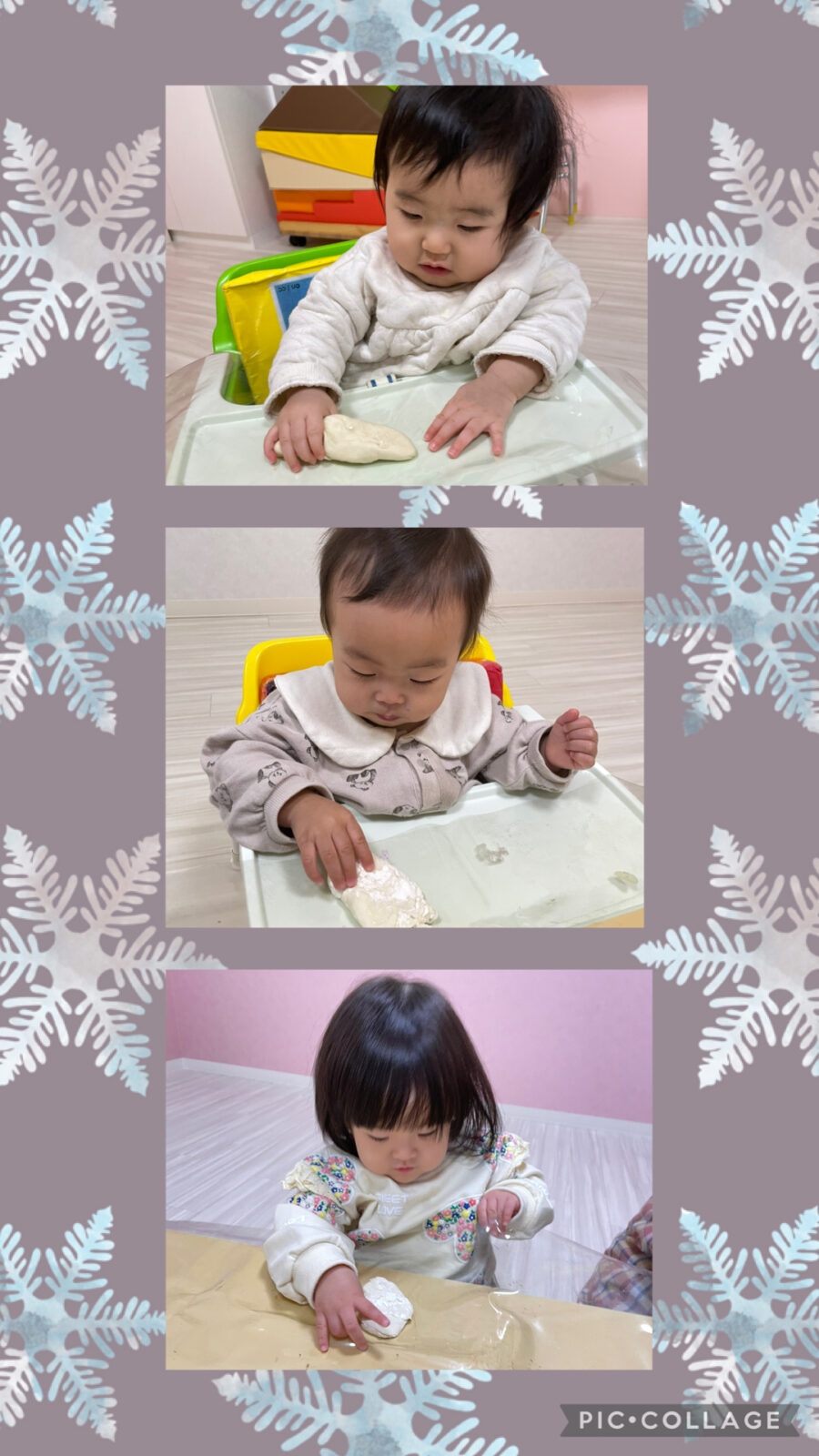 初めての粘土を指でツンツン触ったり先生が粘土をこねてるところをじっと見ていました😊また粘土に触れる機会を作っていきたいと思います😆