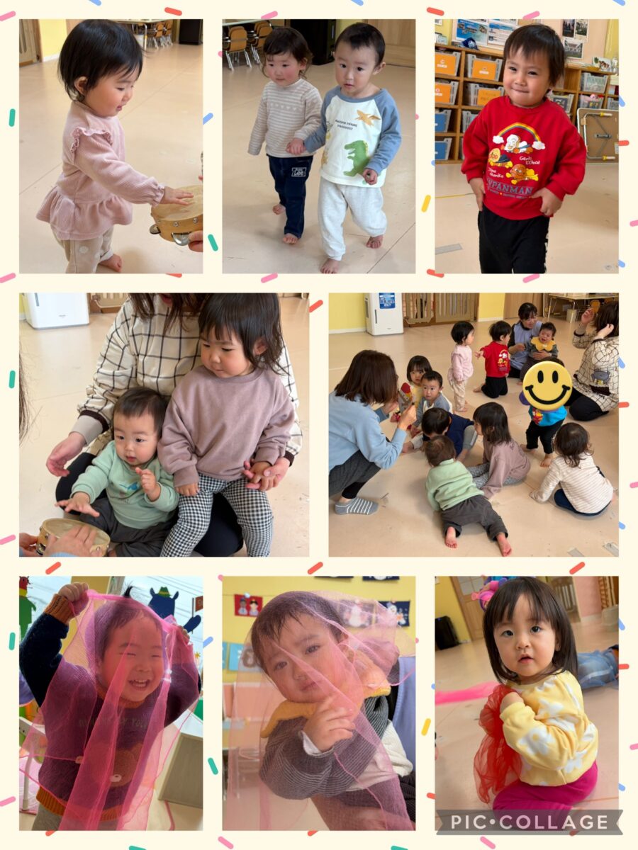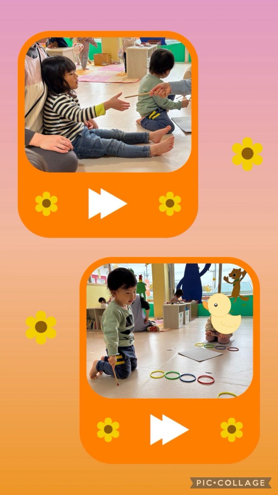 「あ・か」と言いながら赤色の輪っかを叩いて
