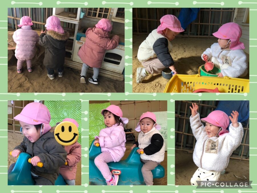 砂遊びや三輪車、シーソーなどお友達と関わり一緒に遊ぶことを楽しんでいました😊