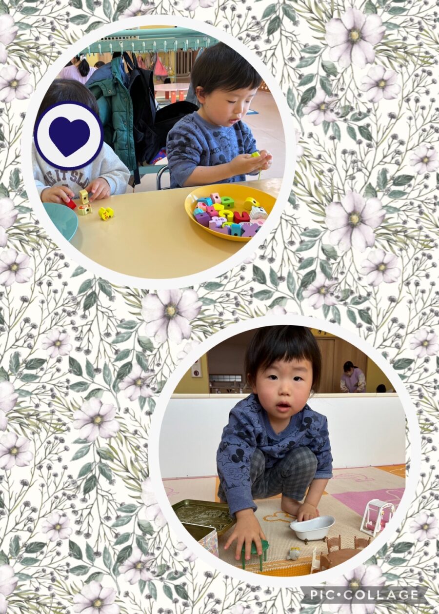 ブルー組さんは室内で遊びました!シルバニアファミリーが気に入ってそっと遊ぶ姿がありました☺️