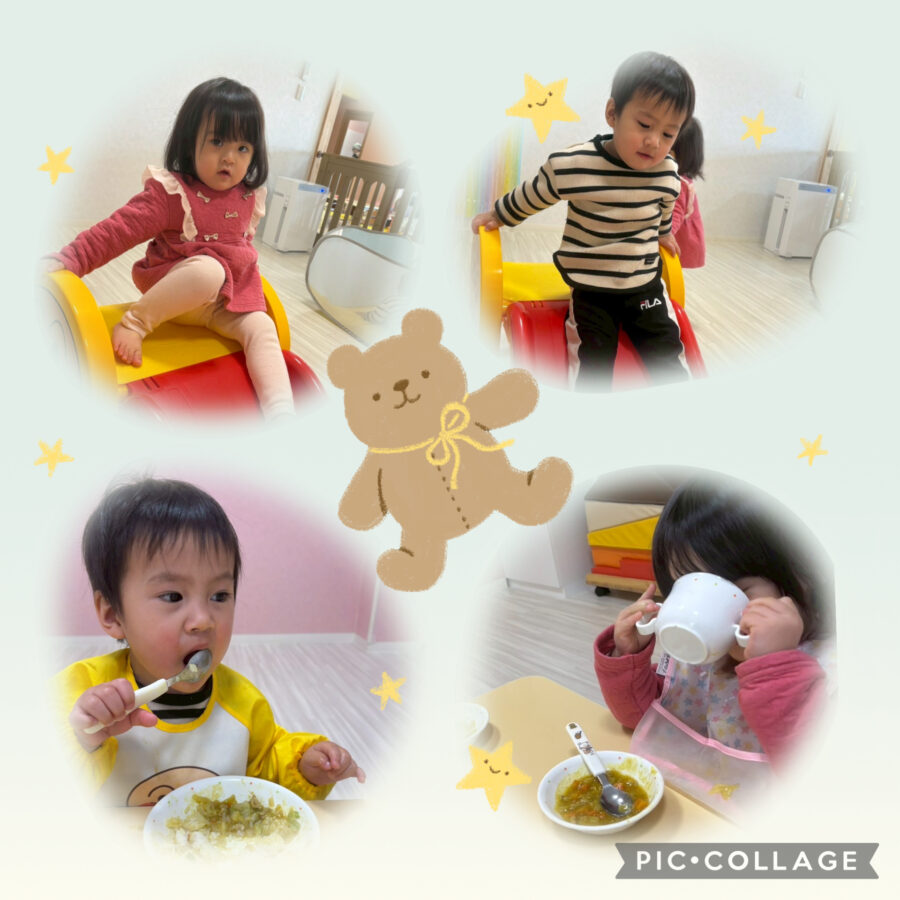 ポム組さんは、お部屋ですべり台をして遊びました☺️給食もおいしくいただきました💓