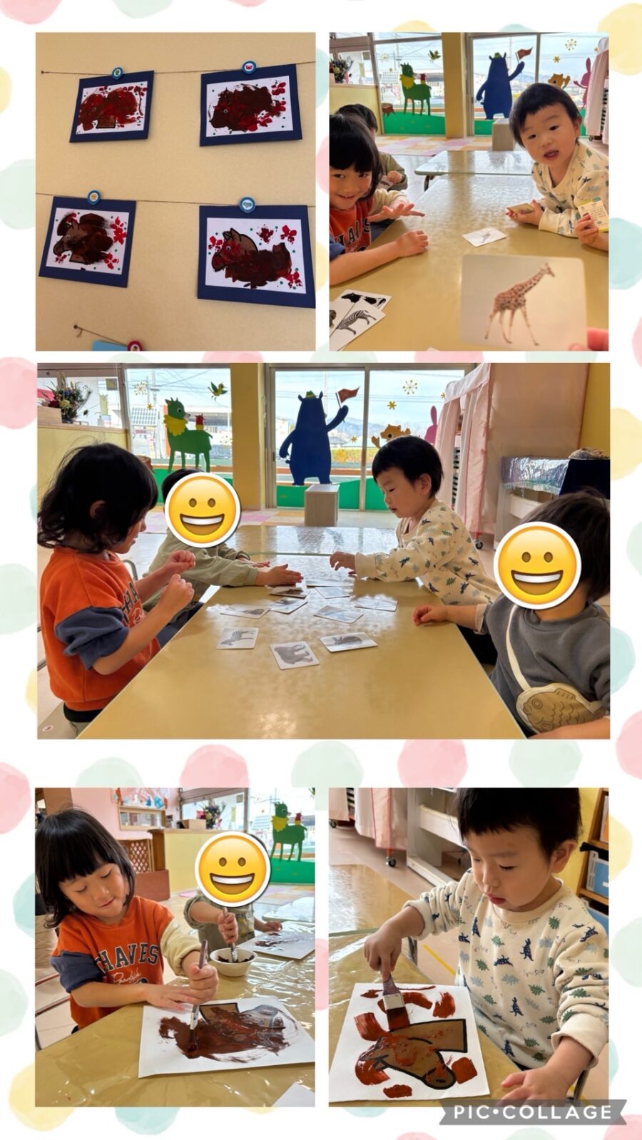 などで遊びました!製作では、手の平に筆で